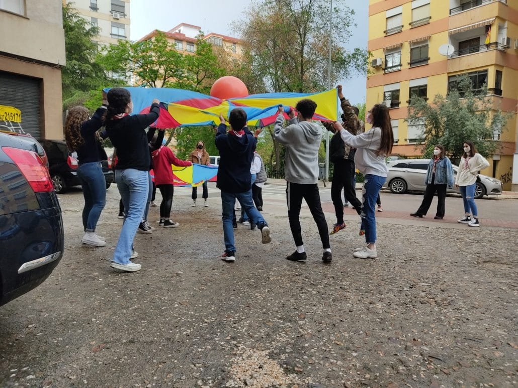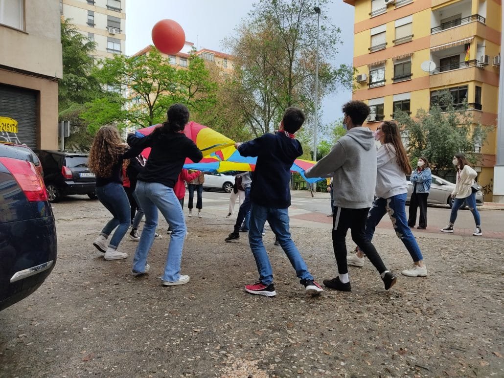 En cuanto a la unidad, empezaron leyendo unos textos en público para fomentar la pérdida de vergüenza, siguieron con una actividad en la que tenían que estar un minuto hablando sobre cuestiones que les planteaban el resto de la unidad. Y justo después de un poquito de distensión con unos paracaídas y pelotas, pasaron a definirse gráficamente como personas y expresarlo después al resto.