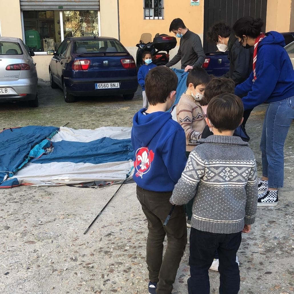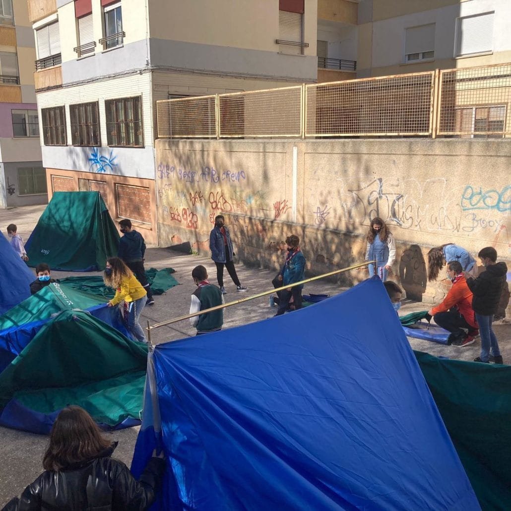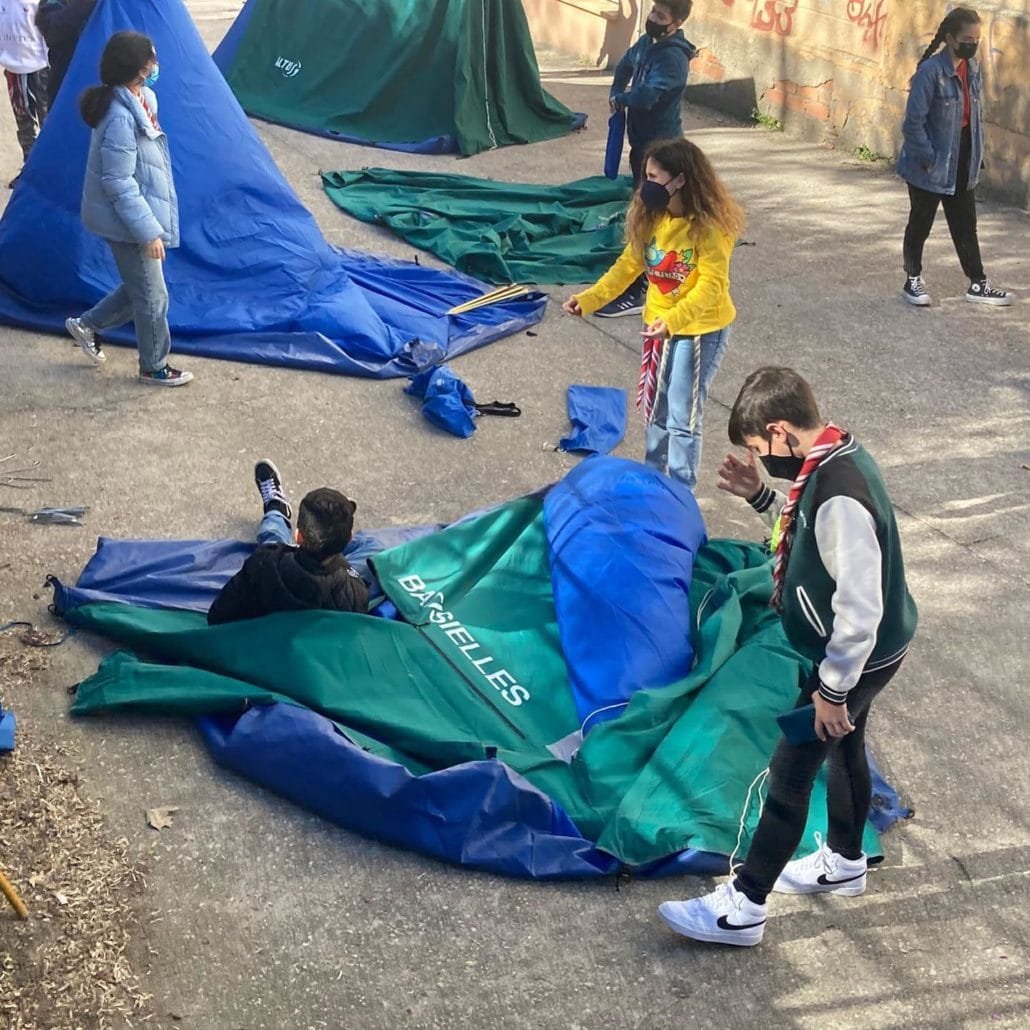 Durante toda la jornada del pasado sábado todas las secciones se centraron en preparar lo que dentro de poquito serán sus nuevas habitaciones: las tiendas de campaña.