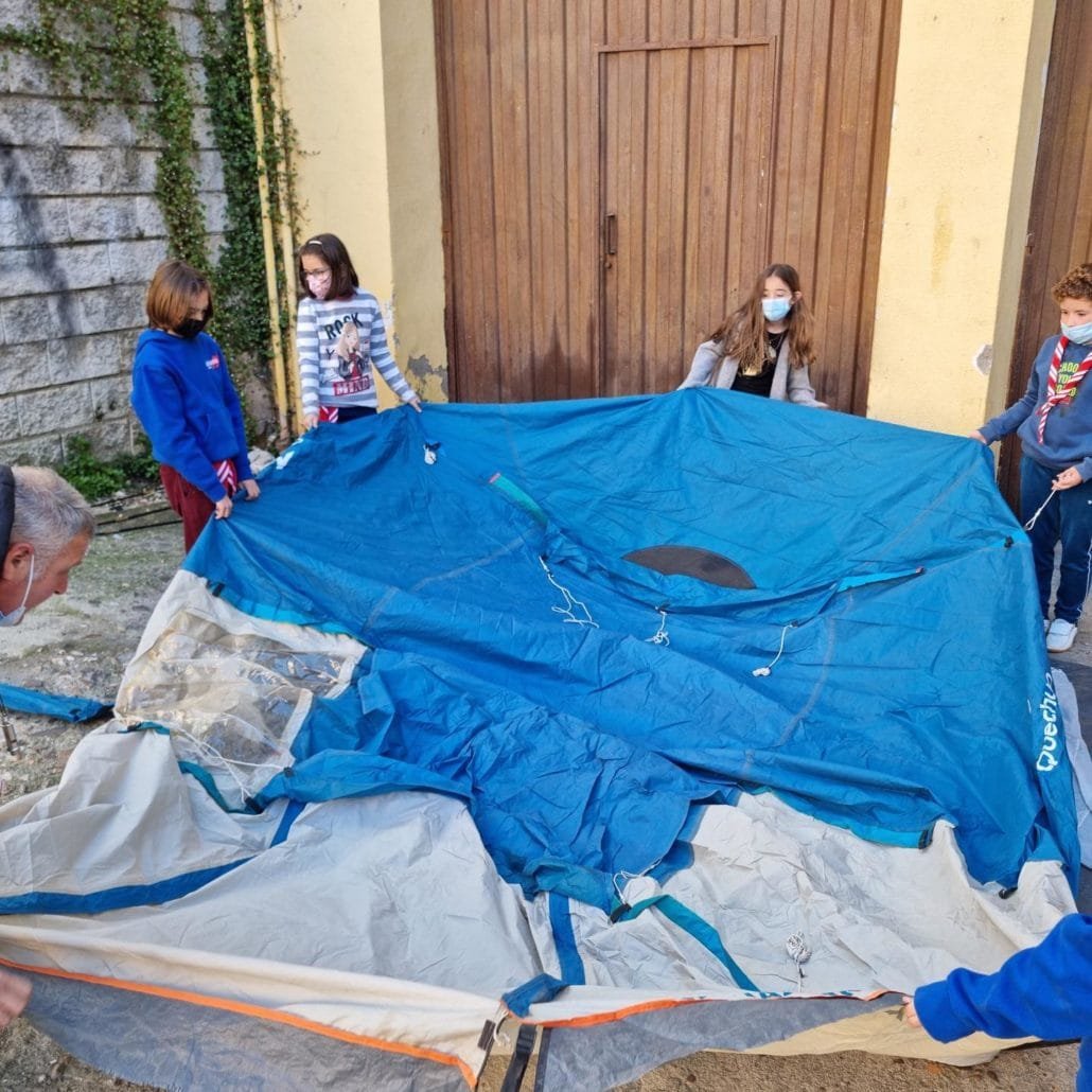 Este sábado, la unidad no tuvo reunión, pero los rovers si. Estos, también vieron el estado de su tienda de campaña para poder dormir a gusto en la acampada de primavera y echaron unas manitas a los más peques del grupo: a los castores.
