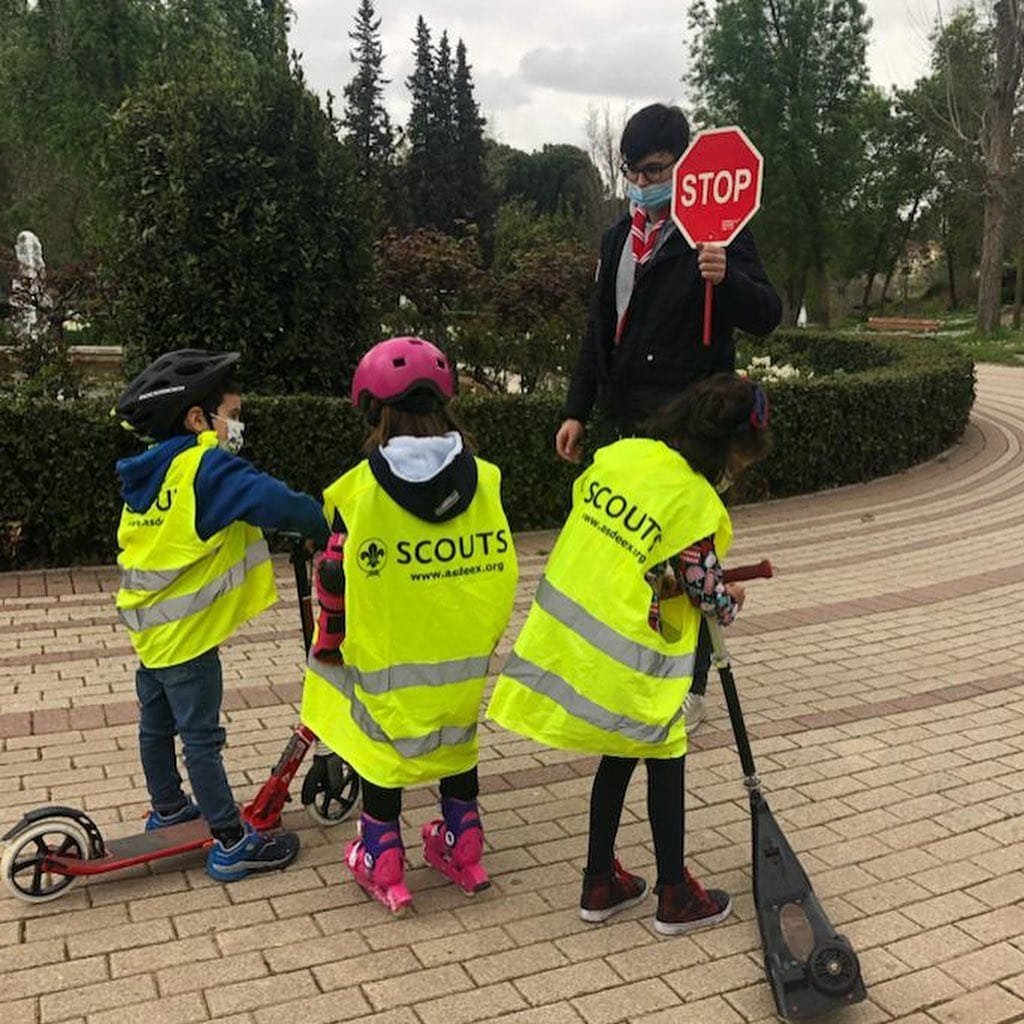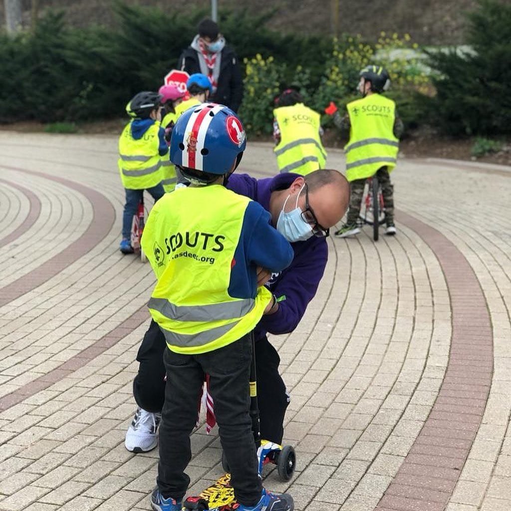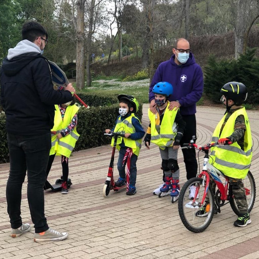 Por un lado, los castores tuvieron una reunión basada en la educación vial, donde realizaron diferentes circuitos con patines o bicis que se trajeron, aprendiendo las señales de tráfico y a «vivir» en una sociedad cada vez con más vehículos.